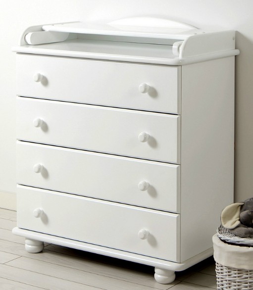 4 вместительных больших ящика для вещей, и установленный сверху, откидной пеленальный столик, для быстрой и удобной смены пелёнок. Мобильность комода обеспечивает комбинированная опора из 2-х ножек и 2-х колёс.